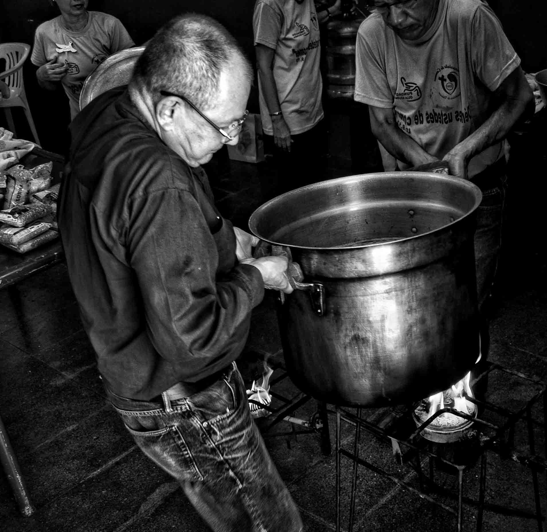 Cada día, en la parroquia Inmaculada de Camoruco en la ciudad de Valencia un grupo de personas recibe comida. “La Olla Solidaria” se reparte ante los presentes que incluyen personas de tercera edad y niños. Se trata de la conocida iglesia de los italianos.