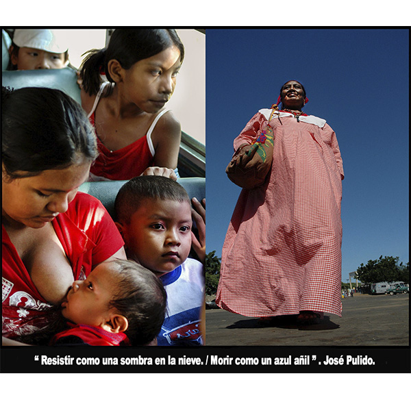 Las imágenes de los wayuu. Alegría de dientes retando lo amoroso. Es lo cercano a un gran poema donde se narra la antigüedad de unas miradas, la eternidad del ópalo de unos ojos, que vieron el pasado más remoto y que en este presente miran la feria, la ciudad mecánica, la modernidad de unos artefactos. He ahí la posmodernidad de unos wayuu subidos a un camión como si fueran pájaros encima de un acantilado. Hurgamos en la espiritualidad femenina, la maternidad estremecedora, la sensualidad florecida, la soledad maquillada, la tristeza indecible. Ojos de wayuu detallando a través de los lentes oscuros al fotógrafo que los contempla desde el portal de otro mundo para mostrarnos el alma de un pueblo. José Pulido. Periodista. Escritor
