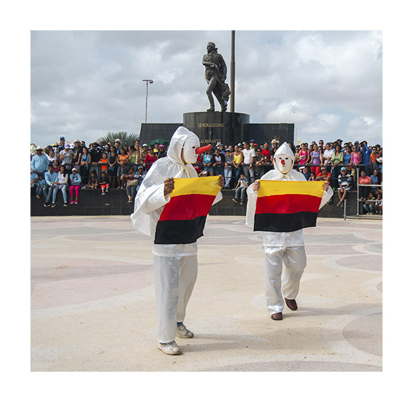 El 27 de diciembre la mojiganga avisa que el 28, el día de los santos inocentes estarán Los Locos. La mayoría de las manifestaciones culturales en Venezuela están ligadas a los colores vivos, representativos del sol caribeño. En este ensayo, hay un registro de la actividad principal de los Locos de la Vela de dos fechas: diciembre del 2018 y diciembre de 2024.